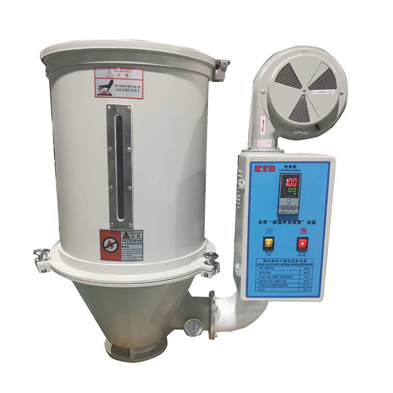 12 kg plastikinė džiovyklė per džiovinimo ventiliatorių pučia nuolatinį aukštos temperatūros vėją į džiovinimo cilindrą. Iškepus žaliavoms, pradinė žaliavų drėgmė statinėje pašalinama, kad būtų pasiektas tikslas pašalinti žaliavų drėgmę.